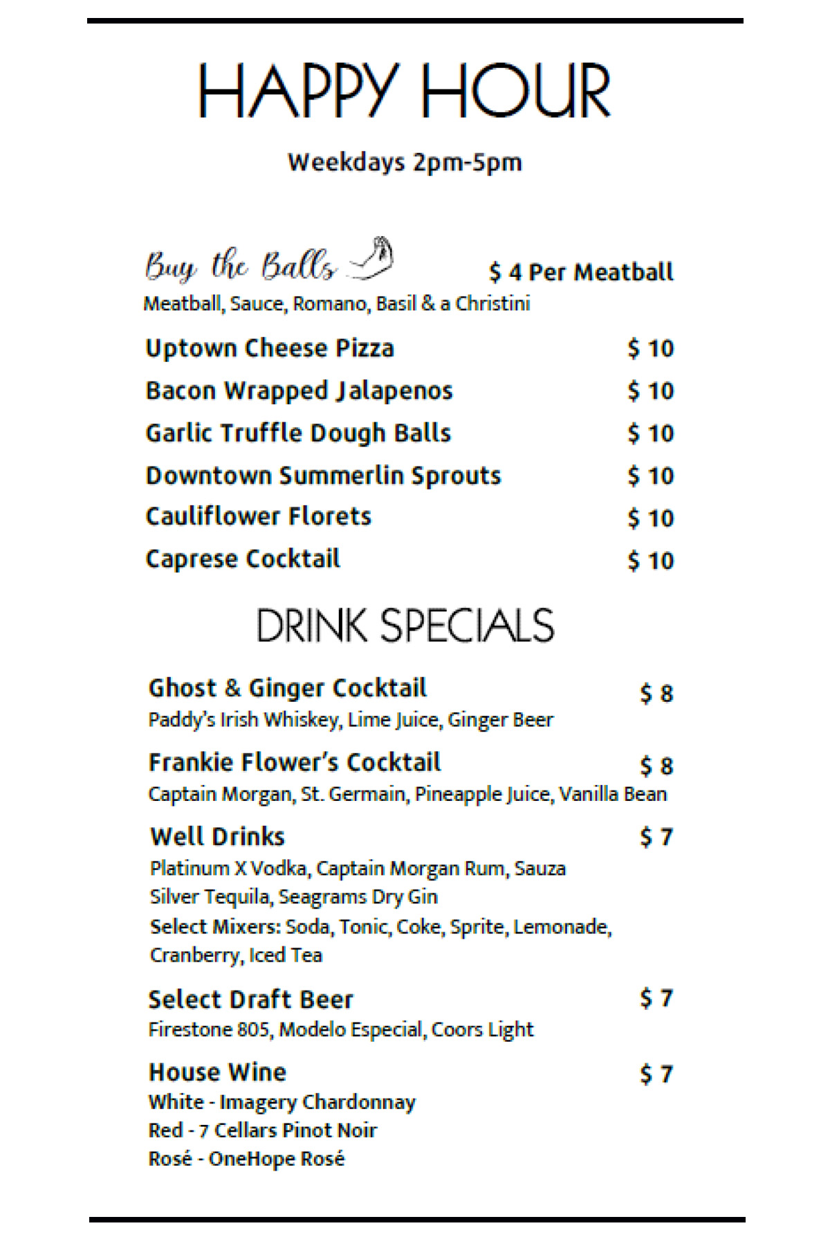 All of us at Frankie’s Uptown Las Vegas are excited about Happy Hour. Come visit us Monday to Friday ~ 4:00pm to 6:15pm for great food and drink specials. We’re here for you so bring some friends or meet new ones. As a proud sponsors of The Las Vegas Aviators, we also support every local team. We’re happy to get back to business.